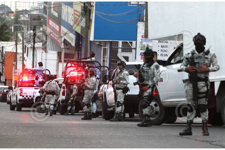 CUERNAVACA, MORELOS, 14NOVIEMBRE2024.- Elementos de la Guardia Nacional y del Ejercito apoyan un cateo de la Fiscalía de Justicia de Morelos realizado a un taller de motocicletas ubicado en la avenida Vicente Guerrero, al norte de la capital. FOTO: MARGARITO PÉREZ RETANA/CUARTOSCURO.COM