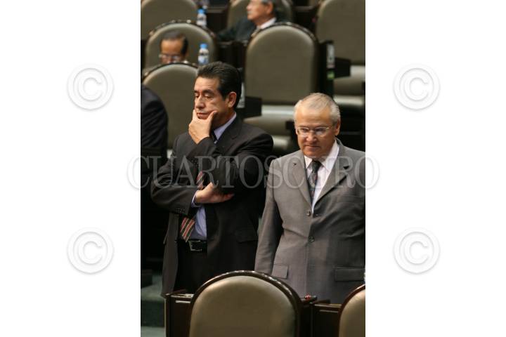 MÉXICO D.F. 14SEPTIEMBRE2007.-Los diputados, Emilio Gamboa Patrón diputado coordinador de la bancada del PRI y Javier González Garza coordinador de la bancada del PRD, durante la sesión en la Cámara de Diputados. FOTO: GUILLERMO PEREA/CUARTOSCURO.COM