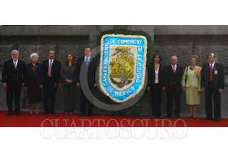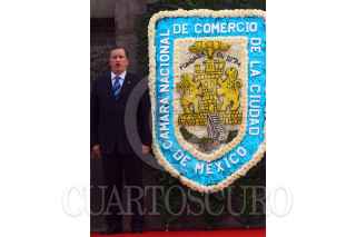 MÉXICO,D,F.,14SEPTIEMBRE2007.-Lorenzo Ysasi Presidente de la Cámara de Comercio acompañado por miembros de la mesa directiva montan una guardia de honor en el ángel de la Independencia para celebrar los 197 años de la Independencia Nacional.
