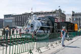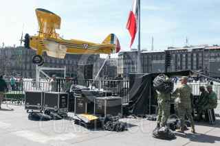 CIUDAD DE MÉXICO, 18NOVIEMBRE2024.- La SEDENA colocó una replica de una locomotora y dos aeroplanos con motivo de la ceremonia cívica del Aniversario de la Revolución Mexicana que se realizará este próximo 20 de Noviembre en el Zócalo. FOTO: MOISÉS PABLO/CUARTOSCURO.COM