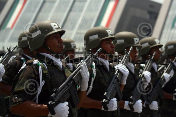 MÉXICO,D,F.,14SEPTIEMBRE2007.- Durante la ceremononia de clausura y apertura de cursos de los planteles militares ,Polícia Militar realizan un desfile de honor. FOTO:SÁSHENKA GUTIERREZ/CUARTOSCURO.COM