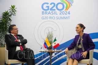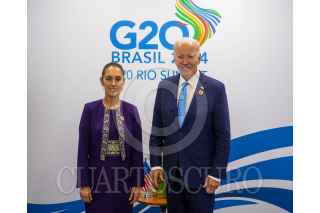 RÍO DE JANEIRO, BRASIL, 18NOVIEMBRE2024.- Claudia Sheinbaum, Presidenta de México, saluda a Xi Jinping, presidente de China, se reunieron en el marco del G20 Río Summit. FOTO: PRESIDENCIA/CUARTOSCURO.COM