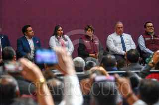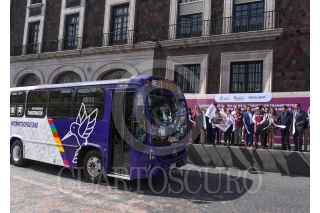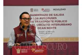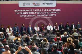 TOLUCA, ESTADO DE MÉXICO, 19NOVIEMBRE2024.- Delfina Gómez Álvarez, Gobernadora del Estado de México encabezó el banderazo de salida a los autobuses del Transporte Público del Circuito Interurbano Tollocan Norte de la empresa Intermetropolitano con tecnología Euro5. FOTO: CRISANTA ESPINOSA AGUILAR /CUARTOSCURO.COM