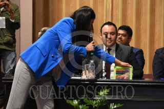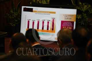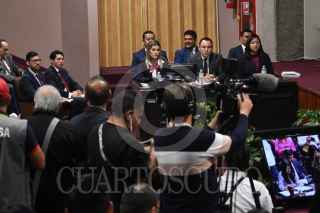 XALAPA, VERACRUZ, 19NOVIEMBRE2024.- José Luis Lima Franco, secretario de Finanzas y Planeación, compareció ante el Congreso de Veracruz. En la ronda de preguntas la diputada Indira Rosales cuestionó sobre la deuda del estado y al concluir colocó un ábaco frente al Lima Franco. FOTO: YERANIA ROLÓN/CUARTOSCURO.COM