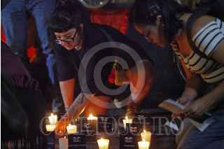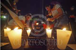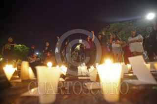 GUADALAJARA, JALISCO. 19NOVIEMBRE2024.- Esta noche en el marco del Encuentro Fotográfico México “EFM”, periodistas de diversos estados de la republica, se congregaron para llevar a cabo una vigilia con un encendido de veladoras denominada “Honor y Gloria”, esto en memoria de periodistas asesinados en México, dicho evento se llevo a cabo en la explanada de la Plaza de la Liberación en el centro de la ciudad. FOTO: FERNANDO CARRANZA GARCIA / CUARTOSCURO.COM