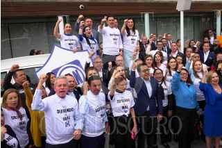 CIUDAD DE MÉXICO, 20NOVIEMBRE2024.- Militantes y simpatizantes del Partido Acción Nacional encabezados por su dirigente nacional Jorge Romero realizaron una manifestación a favor de mantener en función el Instituto Nacional de Transparencia, Acceso a la Información y Protección de Datos Personales . FOTO: ROGELIO MORALES /CUARTOSCURO.COM