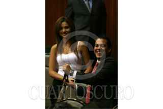 MÉXICO D.F. 14SEPIEMBRE2007.-Luis Fenando Rodríguez Ahumada diputado del PAN, asistió a la sesión de la Cámara de de Diputados acompañado de su novia a la cual besa en el salón de sesiones. FOTO:GUILLERMO PEREA/CUARTOSCURO.COM