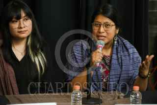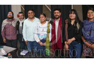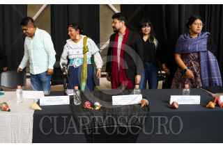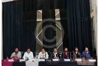 CIUDAD DE MÉXICO. 20NOVIEMBRE2024.- Conferencia del 13 festival de Pantomima, Circo y Clown, que se lleva acabo con jóvenes de las alcaldías de Milpa Alta y Xochimilco. José Manuel González, Celic Aimee Jiménez, María de los Ángeles Reyes y Celia Gaspar, entre otros jóvenes de pueblos originarios en la presentación de este evento. FOTO: VICTORIA VALTIERRA/CUARTOSCURO.COM