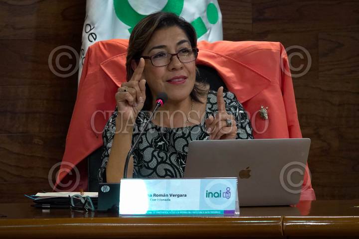 CIUDAD DE MÉXICO, 20NOVIEMBRE2024.- Josefina Román, consejera del INAI, durante la Sesión Ordinaria en el Pleno del Instituto, cabe mencionar que durante el desarrollo de la sesión, los legisladores en la Cámara de Diputados discuten la permanecía del instituto de la transparencia. FOTO: ROGELIO MORALES /CUARTOSCURO.COM