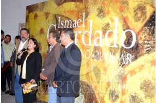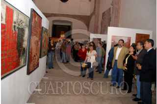 ZACATECAS, ZACATECAS., 14SEPTIEMBRE2007.- La gobernadora del estado de Zacatecas Lic. Amalia García Medina inauguró la exposición «Mitos para no olvidar» del artista plástico Ismael Guardado , que se compone de frescos, pintura, grabado, gobelinos dibujo, tapices y cerámica. En la imagen el Director del Instituto Zacatecano de Cultura David Eduardo Rivera Salinas, el maestro Ismael Guardado, la gobernadora del estado de Zacatecas y el edil capitalino Gerardo de Jesús Félix Domínguez. FOTO: CUARTOSCURO.COM