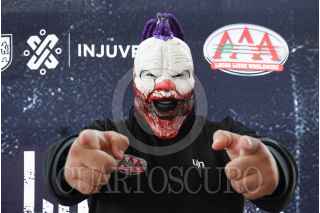 CIUDAD DE MÉXICO, 21NOVIEMBRE2024.- El luchador Dave The Clown durante la Final, del torneo "Lucha por el Barrio 2024" en la Utopía Meyehualco, alcaldía Iztapalapa. FOTO: GRACIELA LÓPEZ /CUARTOSCURO.COM