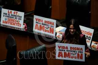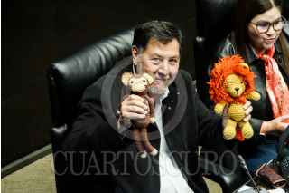 CIUDAD DE MÉXICO, 21NOVIEMBRE2024.- El presidente de la mesa directiva, Gerardo Fernández Noroña, sostiene el peluche de un chango y un león durante la sesión en la que se aprobó la Reforma en materia de Bienestar Animal por unanimidad. FOTO: GALO CAÑAS/CUARTOSCURO.COM