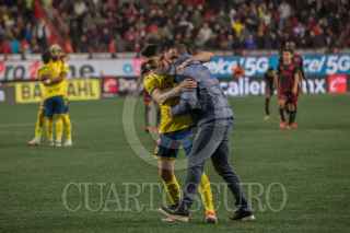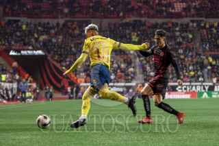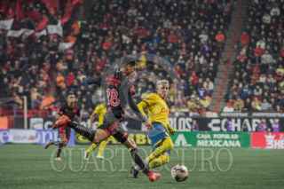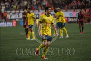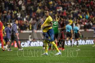 TIJUANA BAJA CALIFORNIA, 21NOVIEMBRE2024.-Christian Calderon (Chicote) del equipo de América. Xolos pierde en penales contra América, aún mantiene esperanza de liguilla. Los Xolos de Tijuana igualaron 2-2 con el América, actual bicampeón del fútbol mexicano, en su partido del play-in disputado en el Estadio Caliente. Sin embargo, en la tanda de penales, el equipo fronterizo cayó 3-2, perdiendo así su primera oportunidad de avanzar directamente a los cuartos de final de la fiesta grande del fútbol mexicano. A pesar del tropiezo, Xolos aún tiene una última oportunidad de clasificar a la liguilla. Su posición en la tabla general los coloca frente al Atlas en un duelo crucial el próximo domingo. Este partido único definirá el pase a los cuartos de final y la continuidad de los Xolos en la lucha por el campeonato.La afición fronteriza se mantiene esperanzada de que su equipo pueda sobreponerse y asegurar su lugar en la fase final del torneo.FOTO: CHRIS NOYOLA/CUARTOSCURO.COM