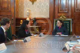 CIUDAD DE MÉXICO, 22NOVIEMBRE2024.- Claudia Sheinbaum, presidenta de México, se reunió en Palacio Nacional con Shelly Shetty, directora ejecutiva en Fitch Ratings, y su equipo, en el que analizaron la economía y finanzas del país. FOTO: PRESIDENCIA/CUARTOSCURO.COM