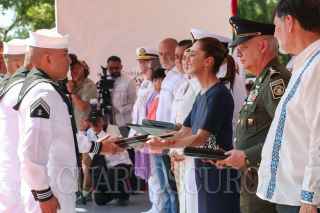 MANZANILLO, COLIMA, 23NOVIEMBRE2024.- Claudia Sheinbaum, presidenta de México, encabezó la ceremonia por el 199 Aniversario de la Consolidación de la Independencia en el Mar. FOTO: PRESIDENCIA/CUARTOSCURO.COM