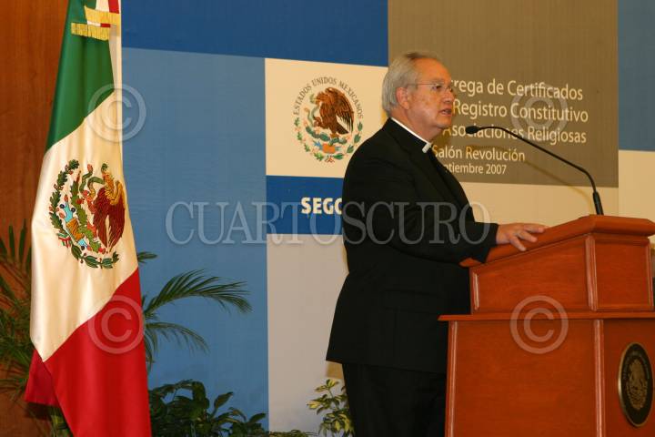 MÉXICO, D.F., 18SEPTIEMBRE2007.- Luis Barrera, vicario de la congresión católica de Papantla, ofreció unas palabras en la ceremonia que organizó la Secretaría de Gobernación en la que les entregaron su certificado de registró que los avala oficialmente como congregación de culto religioso. FOTO: MOISÉS PABLO/CUARTOSCURO.COM