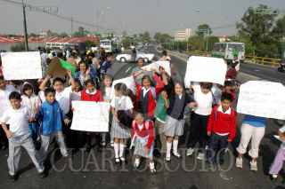 MÉXICO, D.F., 18SEPTIEMBRE2007.- La circulación vial del eje 4 sur a la altura del eje 3 oriente fue cerrada por alumnos de la escuela primaria Caltlamachtilli, ubicada en las calles Nitla y Omacintla en la colonia Tlazintla, protestan que las autoridades pretenden cerrar la escuela. FOTO: PEDRO MARRUFO/CUARTOSCURO.COM