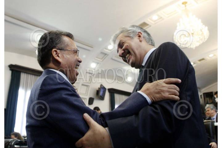 MÉXICO, D.F., 18SEPTIEMBRE2007.-Los senadores Heladio Ramírez, PRI y Ricardo García Cervantes, PAN, durante la sesión ordinaria del Senado de la República. FOTO: CUARTOSCURO.COM