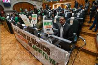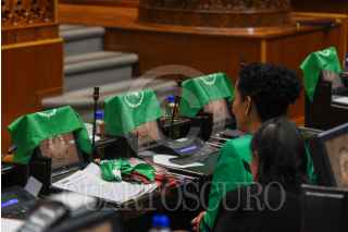 TOLUCA, ESTADO DE MÉXICO, 25NOVIEMBRE2024.- En sesión de la LXII Legislatura local se subirá al pleno la Iniciativa de Proyecto de Decreto para que se reforme el Código Penal del Estado de México, y se Despenalice el Aborto, los curules de las diputadas, diputados y le diputade tienen sus pañuelos verdes en espera de la aprobación de este punto. FOTO: CRISANTA ESPINOSA AGUILAR /CUARTOSCURO.COM