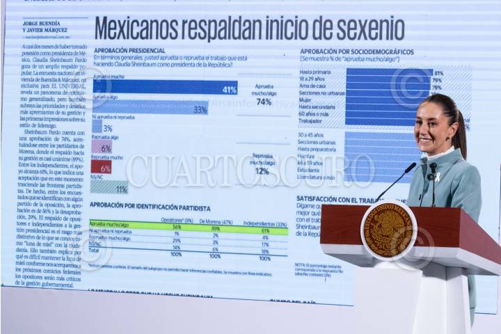 CIUDAD DE MÉXICO, 25NOVIEMBRE2024.- Claudia Sheinbaum, Presidenta de México, destacó que en el periódico El Universal realizaron una encuesta de como los mexicanos perciben su inicio de gobierno, el cuál fue aprobado como bueno por el 70? los entrevistados. FOTO: MOISÉS PABLO/CUARTOSCURO.COM
