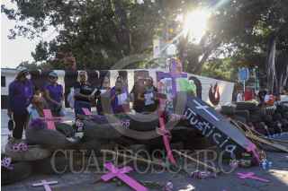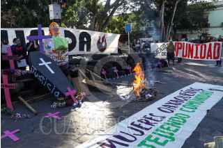 OAXACA, OAXACA, 25NOVIEMBRE2024.- Mujeres oaxaqueñas y activistas instalaron en el centro de la capital de Oaxaca una barricada para conmemorar el Día Internacional para la eliminación de la Violencia contra las Mujeres. Las manifestantes denunciaron que desde el inicio de la administración del morenista Salomón Jara Cruz, han ocurrido 209 feminicidios y se registran 708 casos de mujeres desaparecidas. FOTO: CAROLINA JIMÉNEZ/CUARTOSCURO.COM