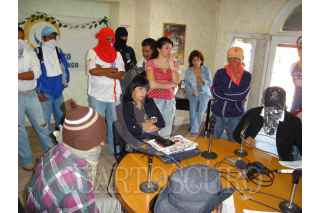 CHILPALCINGO, GUERRERO,18SEPTIEMBRE2007.- Egresados de la normal rural de Ayotzinapa durante la toma de las instalaciones de la radio del gobierno estatal "Soy Guerrero" en la capital del estado, como parte de las acciones que llevan a cabo, para exigir la entrega de plazas para maestros rurales. FOTO:OSCAR ALVARADO/CUARTOSCURO.COM