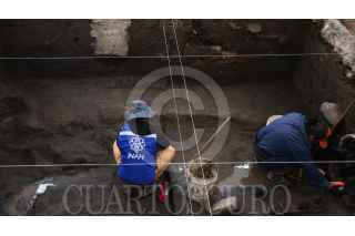 CIUDAD DE MÉXICO, 26NOVIEMBRE2024.- Dos metros por debajo de una de las principales arterias de la Ciudad de México, la avenida Chapultepec, un equipo arqueológico del Instituto Nacional de Antropología e Historia (INAH), institución de la Secretaría de Cultura del Gobierno de México, descubrió vestigios de un muelle y un canal de época prehispánica, en lo que fue la playa de una península ubicada al pie del cerro del Chapulín. Este año, al supervisar las obras para un paso a desnivel, contiguo al paradero de la estación Chapultepec del Sistema de Transporte Colectivo Metro, el grupo de especialistas, encabezado por la investigadora del INAH, María de Lourdes López Camacho, ha identificado varias secciones del cauce artificial y, en días recientes, el pequeño puerto, del que debieron arribar y partir canoas rumbo al lago de Texcoco. Flanqueado por una fina capa de arena, el segmento mejor conservado del canal yace bajo el arroyo vehicular de la avenida Chapultepec, a la altura de calle Lieja y a un costado del edificio que ocupó la Secretaría de Salud, donde, en 2023, se registraron vestigios de una unidad habitacional del asentamiento prehispánico que antecedió al pueblo de indios de San Miguel Chapultepec. FOTO: INAH/CUARTOSCURO.COM