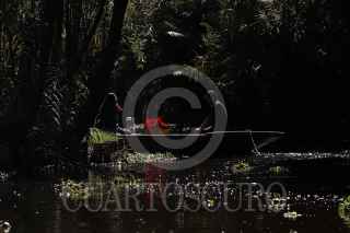 CIUDAD DE MÉXICO, 26NOVIEMBRE2024.- Una pareja lleva en una barca flores de nochebuena. FOTO: DANIEL AUGUSTO/ CUARTOSCURO.COM