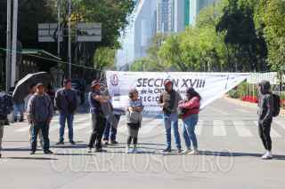 CIUDAD DE MÉXICO, 26NOVIEMBRE2024.- Maestros de la CNTE de Michoacán bloquearon el crédito ve de avenida Juárez y Reforma en protesta para exigir un alza salarial, los docentes señalaron que esperan ser atendidos por autoridades de la Segob y la SEP. FOTO: CUARTOSCURO.COM