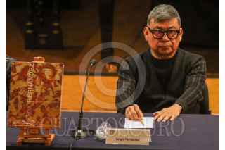 CIUDAD DE MÉXICO. 26NOVIEMBRE2024.- El artista Oaxaqueño, Sergio Hernández, presentó su obra en un catálogo en el Colegio de San Idelfonso. Invitados acompañaron a Maestro quien firmó libros después de la ceremonia. FOTO: VICTORIA VALTIERRA/CUARTOSCURO.COM