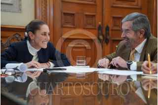 CIUDAD DE MÉXICO, 27NOVIEMBRE2024.- La presidenta Claudia Sheinbaum informó que la tarde de este miércoles conversó con Donald Trump, mandatario electo de Estados Unidos. Sheinbaum Pardo detalló que en la plática abordaron temas como la migración y fentanilo. En la llamada estuvo acompañada del canciller Juan Ramón de la Fuente y se realizó en su oficina de Palacio Nacional. FOTO: PRESIDENCIA/CUARTOSCURO.COM
