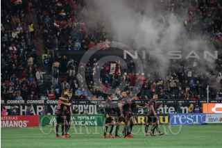 TIJUANA, BAJA CALIFORNIA, 27NOV2024.- Los Xolos de Tijuana dieron la sorpresa en el partido de ida de los cuartos de final de la liguilla del fútbol mexicano, al imponerse con un contundente 3-0 al Cruz Azul. Con esta victoria, el equipo fronterizo toma una sólida ventaja y se perfila con medio boleto para avanzar a la siguiente fase del torneo. El encuentro, disputado en el Estadio Caliente, estuvo lleno de intensidad. Los Xolos supieron imponer su localía con un juego sólido y determinante, destacando tanto en defensa como en ofensiva. La afición rojinegra jugó un papel clave, alentando al equipo durante los 90 minutos. El partido de vuelta se jugará el próximo sábado, donde se definirá al equipo que avanzará a las semifinales. Xolos buscará mantener su ventaja y seguir soñando en esta emocionante liguilla. FOTO: OMAR MARTÍNEZ/ CUARTOSCURO.COM