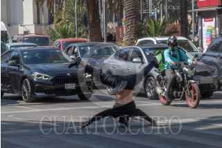 CIUDAD DE MÉXICO, 28NOVIEMBRE2024.- Una joven baila breakdance en avenida Juárez para ganarse un aplauso y de paso unas monedas para seguir con sus estudios. FOTO: MOISÉS PABLO/CUARTOSCURO.COM