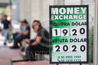 CIUDAD DE MÉXICO, 28NOVIEMBRE2024.- El dólar se oferta por unidad a la compra $19.20 y a la venta en $20.20 en una casa de cambio en la colonia Juárez. El billete verde se vino a la alza tras el anunció de la imposición de aranceles a las exportaciones mexicanas por parte de Estados Unidos. FOTO: MOISÉS PABLO/CUARTOSCURO.COM