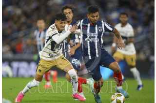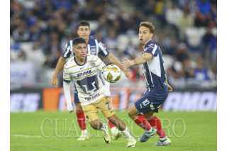 GUADALUPE, NUEVO LEÓN, 28NOVIEMBRE2024.- Héctor Moreno de los Rayados del Monterrey, se disputa el balón con José Caicedo de Pumas, en el estadio BBVA, partido correspondiente a la ida cuartos de final de la Apertura 2024. Marcador Final: Monterrey: 1 - Pumas: 0. FOTO: GABRIELA PÉREZ MONTIEL / CUARTOSCURO.COM