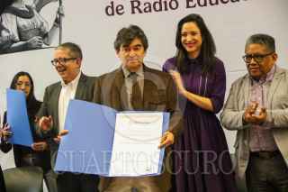CIUDAD DE MÉXICO. 29NOVIEMBRE2024.- Jenaro Villamil, Claudia Curiel de Icaza, acompañaron a Jesús Alejo Santiago a la ceremonia por el 50 aniversario de Radio Educación, que se llevo acabo en el salón Adolfo López Mateos del Complejo Cultural Los Pinos. FOTO: VICTORIA VALTIERRA/CUARTOSCURO.COM