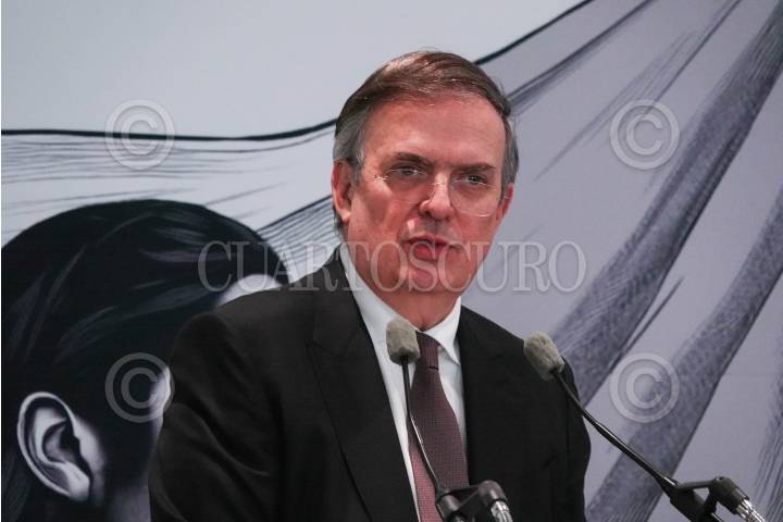 CIUDAD DE MÉXICO, 29NOVIEMBRE2024.- Marcelo Ebrard, secretario de Economía, encabezó la conferencia a medios con motivo del aseguramiento de mercancía procedente de China, Bangladesh y Vietnam, así cómo el cierre de plazas comerciales con giro de mayoreo de estos productos. Ebrard Casaubón estableció que lo que se busca es regular la entrada de mercancía no acreditada al país y que de no comprobarse su legitimidad serán enviadas a destrucción. FOTO: GALO CAÑAS/CUARTOSCURO.COM