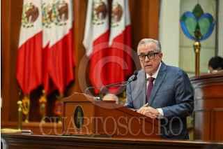 CULIACÁN, SINALOA. 29NOVIEMBRE2024.- El gobernador del Estado, Rubén Rocha Moya, rindió su 3er informe de labores ante el Congreso local. Ricardo Monreal Ávila, coordinador de Morena en la Cámara Baja; lo acompaño en su rendición de cuentas y dijo que pronto el pueblo Sinaloense recobrará la paz. FOTO: CUARTOSCURO.COM