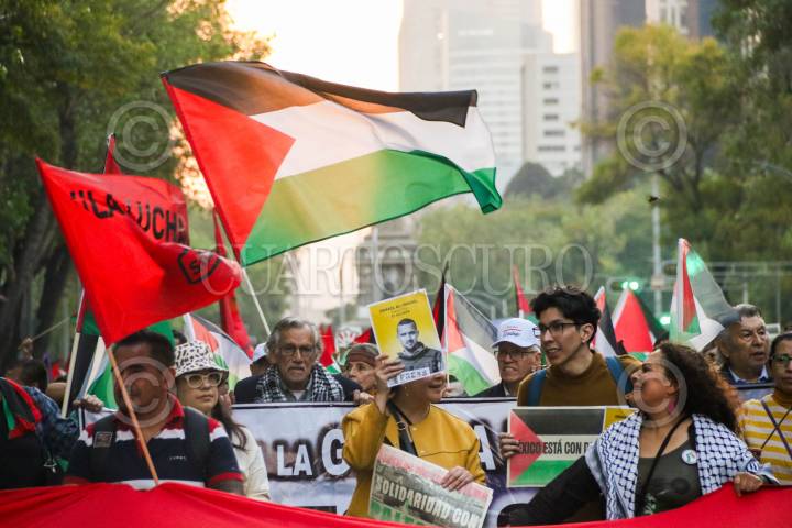 CIUDAD DE MÉXICO. 29NOVIEMBRE2024.- Decenas de ciudadanos marcharon está tarde de la embajada de Estados Unidos a la cancillería, en demanda de que el Gobierno de México, rompa relaciones con Israel; en con la consigna de que no es "Guerra es Genocidio". FOTO: VICTORIA VALTIERRA/CUARTOSCURO.COM