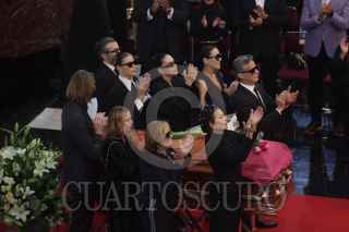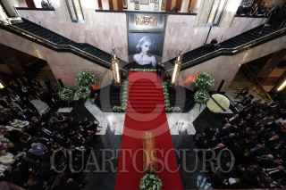 CIUDAD DE MÉXICO, 30NOVIEMBRE2024. Admiradores pasan por delante del féretro de la primera actriz Silvia Pinal en el vestíbulo del Palacio de Bellas Artes durante su homenaje tras su fallecimiento el pasado 28 de noviembre. FOTO: EDGAR NEGRETE LIRA/CUARTOSCURO.COM