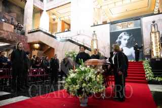 CIUDAD DE MÉXICO, 30NOVIEMBRE2024.- Alejandra Guzmán, Sylvia Pasquel, Stephanie Salas y Michelle Salas, abrazan el féretro de Silvia Pinal durante su homenaje luctuoso realizado en el Palacio de Bellas Artes. FOTO: SECRETARÍA DE CULTURA/CUARTOSCURO.COM