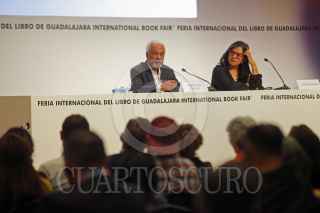 GUADALAJARA, JALISCO. 30NOVIEMBRE2024.- Abdulrazak Gurnah Premio Nobel de Literatura, durante la conferencia magistral que ofreció, esto en el marco de la edición 38 de la Feria Internacional del Libro De Guadalajara (FIL), que se lleva a cabo en las instalaciones de la Expo Guadalajara y en donde el País Invitado de Honor es España. FOTO: FERNANDO CARRANZA GARCIA / CUARTOSCURO.COM
