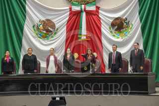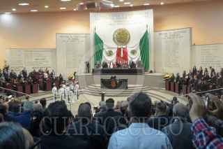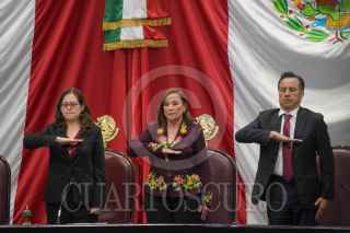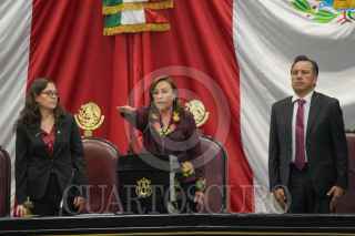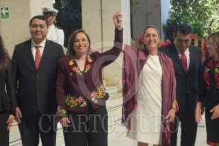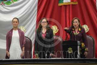XALAPA, VERACRUZ, 01DICIEMBRE2024.- Rocio Nahle tomo protesta como gobernadora constitucional de Veracruz. Estuvo acompañada de la Presidenta de México, Claudia Sheinbaum, y el gobernador saliente, Cuitláhuac García. El protocolo se realizó en el Congreso del Estados. FOTO: YERANIA ROLÓN/CUARTOSCURO.COM