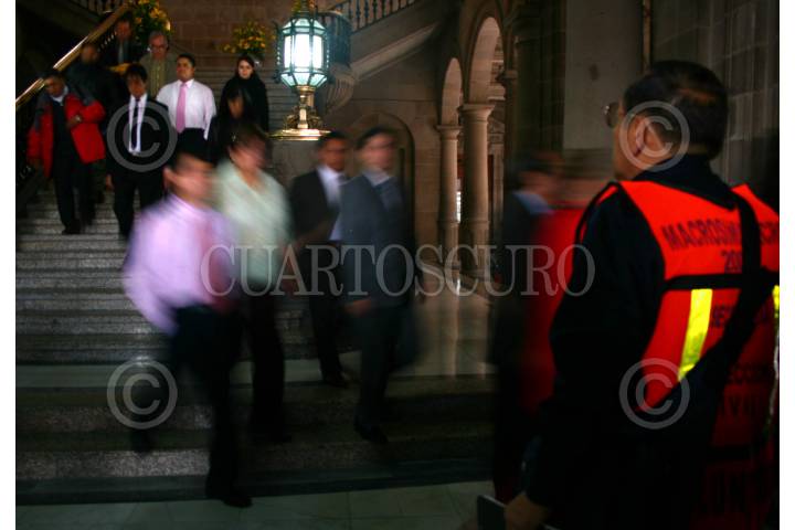MÉXICO, D.F. 19SEPTIEMBRE2007.- Marcelo Ebrard Jefe de Gobierno del Distrito Federal y Elias Moreno Brisuela Secretario de Protección Civil durante el simulacro mascivo que se realizó con motivo del 22 aniversario del sismo de 1985. FOTO: SASHENKA GUTIÈRREZ/CUARTOSCURO.COM