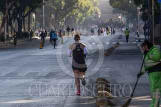 CIUDAD DE MÉXICO, 01DICIEMBRE2024.- Una mujer trota sobre avenida Juárez durante el Paseo Ciclista Dominical.. FOTO: MOISÉS PABLO/CUARTOSCURO.COM