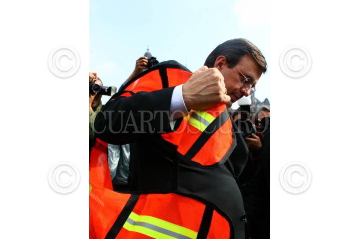 MÉXICO, D.F. 19SEPTIEMBRE2007.- Marcelo Ebrard Jefe de Gobierno del Distrito Federal y Elias Moreno Brisuela Secretario de Protección Civil durante el simulacro mascivo que se realizó con motivo del 22 aniversario del sismo de 1985. FOTO: SASHENKA GUTIÈRREZ/CUARTOSCURO.COM