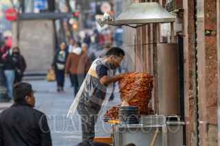 CIUDAD DE MÉXICO, 01DICIEMBRE2024.- Taquero prepara el trompo de pastor en un restaurante del Centro Histórico. FOTO: MOISÉS PABLO/CUARTOSCURO.COM