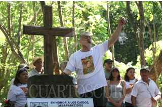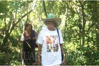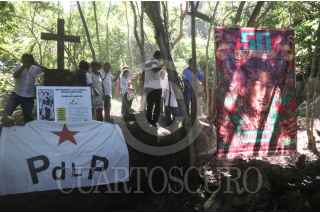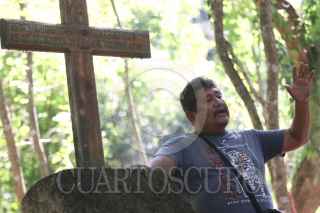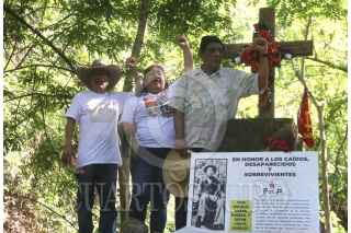 TECPAN DE GALEANA, GUERRERO, 01DICIEMBRE2024.- Familiares, compañeros de lucha y decenas de simpatizantes de Lucio Cabañas, maestro, guerrillero, y líder del Brigada Campesina de Ajusticiamiento del Partido de los Pobres , acudieron al sitio donde murió en combate el 2 de diciembre de 1974. Realizaron un acto de memoria en la cañada del Otatal, dónde llevaron una ofrenda floral para recordar la lucha del profesor que se remontó a la sierra cafetalera de Atoyac de Álvarez luego de la represión que realizó el gobierno de Guerrero el 18 de mayo de 1967, dónde murieron cinco personas, incluida una mujer embarazada y dos agentes policiacos. En medio de vivas a los guerrilleros caídos en combate y palabras muy emotivas se recordó la muerte de Lucio Cabañas, Lino Rosas Pérez y Esteban Mesino Martinez y la detención del adolescente Marcelo Serafín Juárez, quién desde entonces fue desaparecido por el Estado. En la imagen Diego Lucero Estrada, hijo del guerrillero Diego Lucero. FOTO: MARGARITO PÉREZ RETANA/CUARTOSCURO.COM