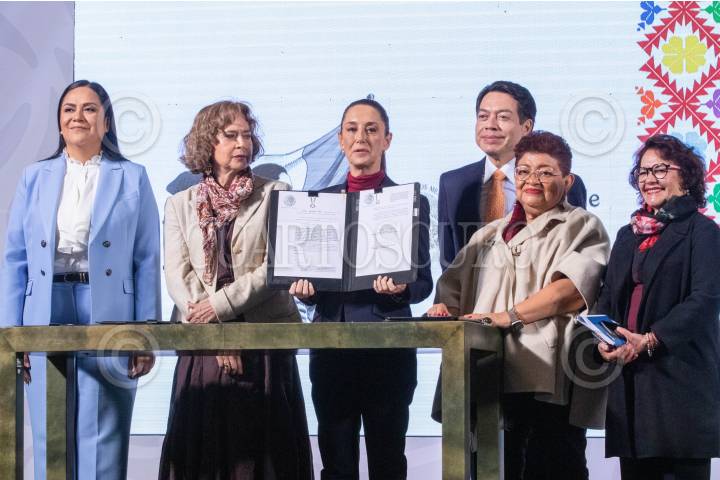 CIUDAD DE MÉXICO, 02DICIEMBRE2024.- Claudia Sheinbaum, Presidenta de México, firmo varios decretos com la protección a animales, el crecimiento de las Universidades Rosario Castellanos y las pensiones Bienestar para personas con discapacidad, y la Beca Rita Cetina, durante la mañanera del pueblo. FOTO: MOISÉS PABLO/CUARTOSCURO.COM