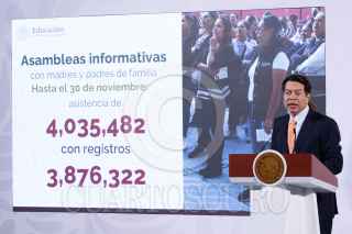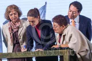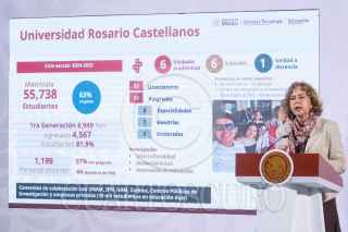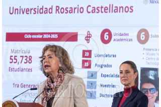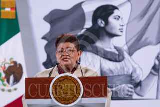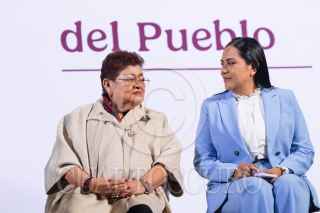 CIUDAD DE MÉXICO, 02DICIEMBRE2024.- Ernestina Godoy, Consejera Jurídica de la Presidencia, y Ariana Montiel, secretaria del Bienestar, conversan durante la mañanera en Palacio Nacional. FOTO: MOISÉS PABLO/CUARTOSCURO.COM